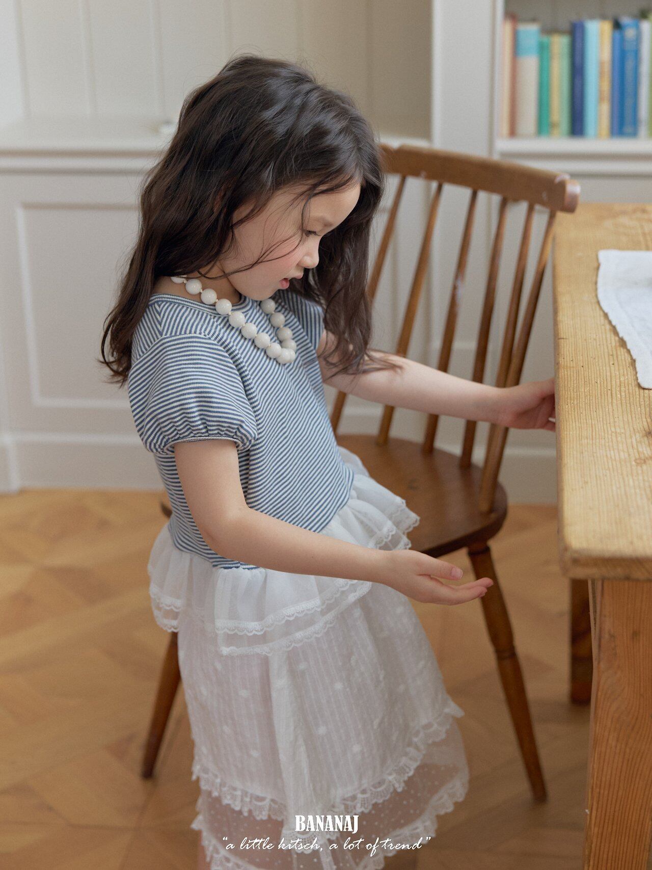 ふんわりとしたチュールフリルを合わせた、